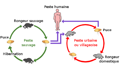 En simplifiant on peut résumer les cycles de la peste suivant le schéma ci‑contre.
