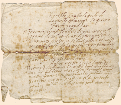 « Recette contre la peste de la quelle Monseigneur le Prince fait grand cas.