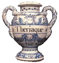 La thériaque est une préparation longue et complexe faite une fois par an par les apothicaires incorporant jusqu’à soixante quatre ingrédients végétaux dont ceux cités dans les recettes précédentes, minéraux et animaux comme de la chair de vipère séchée. Sans doute onéreuse, elle jouit d'une grande réputation d'efficacité. Des formes plus simples sont mélangées à du miel et du genièvre pour constituer un électuaire (forme de préparation médicamenteuse administrée par voie orale) pâteux ou liquide. L’opiat est un électuaire contenant de l’opium.