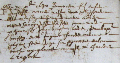 Prenons l'exemple d'une partie très mineure des contraintes imposées à la famille Domenjon suite au décès le 3 septembre 1630 de Jenette veuve de François.