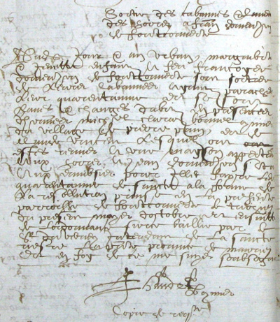 « Dudit jour et an [17 octobre 1630] Urbain, Marguerite et Jenette enfants à feu François Domenjon de Fontcouverte sont sortis de leurs cabanes ayant parachevé leur quarantaine et se sont lavés et changés d’habits en présence d’honnête Michel Claraz Bonnel commis du village de Pierre Pain et de Claude Vincent, lesquels ont été remis à une maison appartenant aux hoirs à Jean Domenjon étant aux […] pour iceux faire la dite quarantaine de santé à la forme de la résolution prise en la présente paroisse de Fontcouverte le treizième du présent mois d’octobre et ensuite de l’ordonnance […] baillée par le S Duverney intendant de la santé rière la présente province de Maurienne et en foi de ce me suis soussigné. »