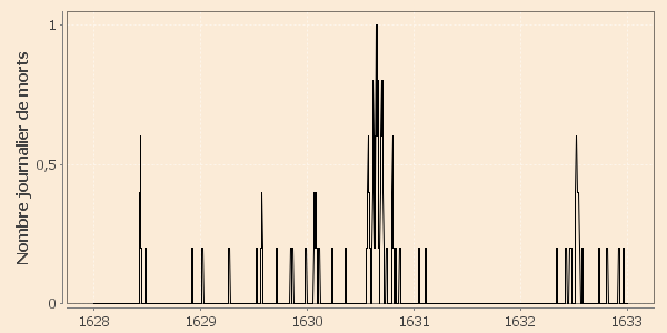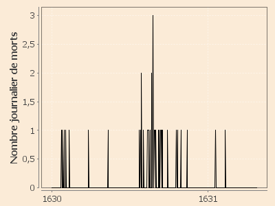 Malgré le peu de décès enregistrés, l'épidémie de 1630 se distingue assez bien de la mortalité naturelle.