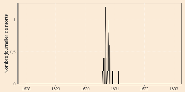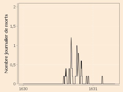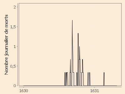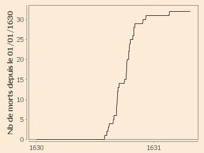 d'épidémie estimée : 15 août 1630 (ou début des archives).