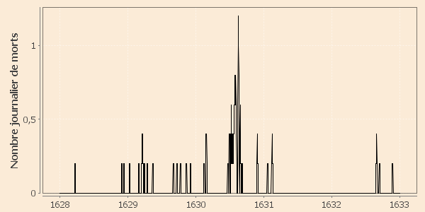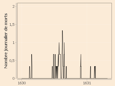 L’épidémie de 1630 est bien délimitée au milieu de la mortalité naturelle.