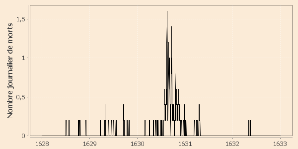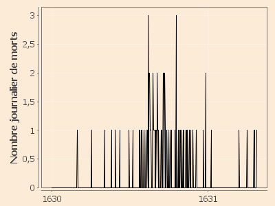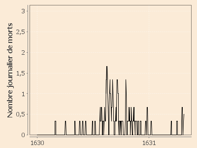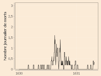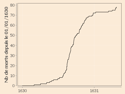 L’épidémie de 1630 débute clairement, se prolongeant par de nombreux épisodes répartis en deux phases, la première très active, la seconde nettement moins. Elle s’étend sur près de 5 mois (et peut-être 6 mois si les décès de fin 1630 et de début 1631 étaient à considérer comme pesteux). L’épidémie est ainsi typiquement rurale.