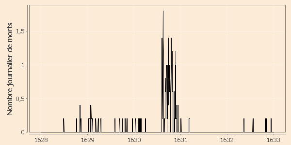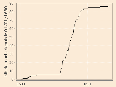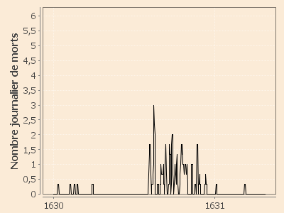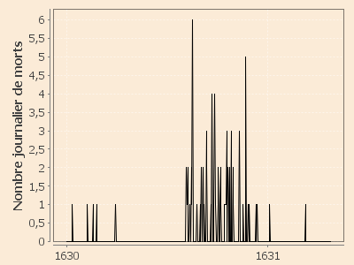 estimée : 4 janvier 1631 (dernier pesteux déclaré). Selon