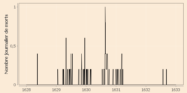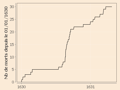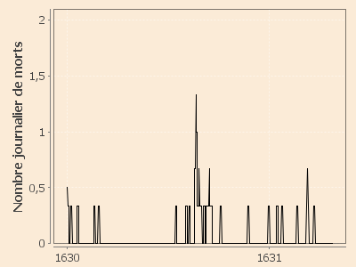 La peste de 1630 apparaît assez clairement sur le fond de la mortalité naturelle.