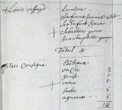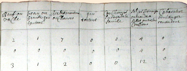 Il se trouve que quelques recensements, en principe plus particulièrement intéressés par les humains, signalent également les « bestiaux ». C’est le cas du recensement de 1561 (le Duc a alors des préoccupations fiscales) mais aussi ceux de 1718 et 1734.