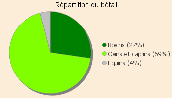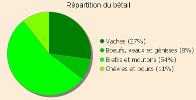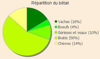 La quasi totalité des troupeaux se répartit régulièrement entre 5 et 40 têtes avec une fréquence maximale pour ceux de 10 à 15 têtes. Ils sont constitués pour un quart seulement de bovins ; cette proportion est pratiquement indépendante de la taille des troupeaux. Elle ne dépendrait donc pas de la « richesse » des propriétaires mais correspondrait à un optimum économique (disponibilité des moyens nécessaires à chaque type de bétail et utilisation des produits engendrés).