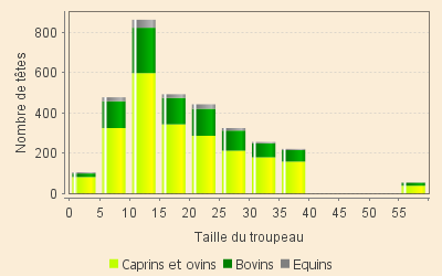 Ces tailles sont très variables depuis les maisons qui n'ont aucun bétail jusqu'à des troupeaux importants dépassant 50 têtes.