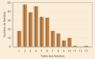 Gardant à l'esprit que nos graphiques ne sont que des photographies très ponctuelles dans le temps, on peut cependant constater que la répartition du nombre des membres des regroupements change relativement peu au cours des siècles. Le volume quasi constant de la population peut expliquer ce fait. On peut, en particulier retenir que les regroupements à 4 membres (le plus généralement un couple et 2 enfants) reste une caractéristique quasi universelle. On est bien loin des multiples familles nombreuses qu'on imagine en milieu rural.
