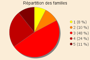 On trouve ainsi une répartition équilibrée qui tend à devenir la norme. Les familles de type 5 (dans lesquelles cohabitent plusieurs générations de couples) est un signe de l'accroissement de la population et des habitudes de cohabitation que cet accroissement induit.