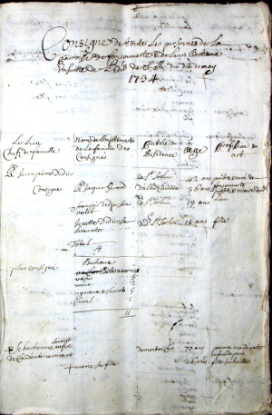 Trois recensements ayant été faits en 1716, 1718 et 1734, c’est aussi l’occasion de comparer les données fournies par les deux types de dénombrements. Ils ont été traités de façon détaillée.
