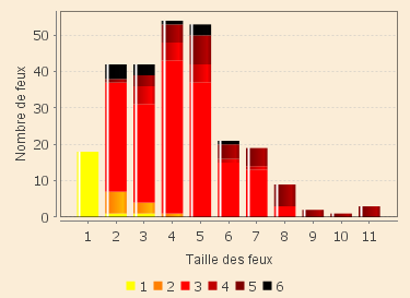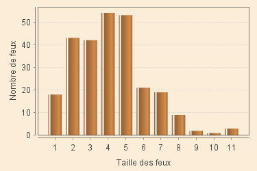 On peut encore déterminer le nombre de personnes de la population vivant dans des « feux » de taille donnée.