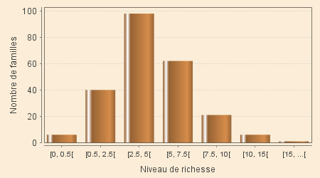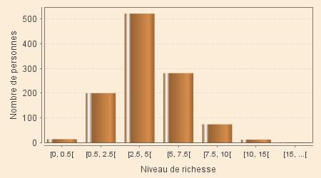 La répartition par personnes est très voisine de la précédente. Ceci traduit simplement le fait que les « familles » ont des effectifs dépendant peu de la richesse. Seules les « familles » les plus pauvres seraient moins peuplées.