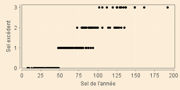 Le graphique donnant le complément de sel en fonction du sel directement imputable aux personnes et au bétail montre qu'il a appliqué une certaine proportionnalité très simple par tranches (déjà !) ; les feux directement taxées à 50 livres au plus ne supportent pas de supplément, celles taxées entre 51 et 75 en supportent une, celles taxées entre 76 et 100 en supportent deux et celles dépassant 100, trois.