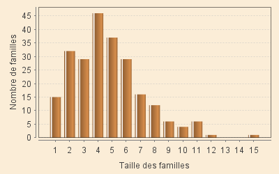 Le volume moyen des « familles » de 4,7 personnes est légèrement supérieur à celui rencontré bien souvent dans la France rurale de l’Ancien Régime.