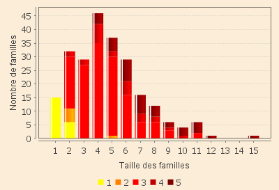 L’analyse plus précise de la fréquence des tailles des « familles » montre que :