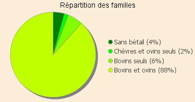 Les « familles » n'élevant que des caprins ou des ovins représentent seulement 2 % tandis que 6 % n'ont que des bovins.