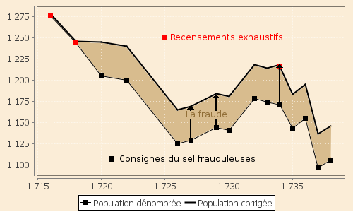 Quoiqu'il en soit, la détermination du volume de la population donné par une consigne du sel doit tenir compte de l'ampleur exacte des conséquences du comportement roublard de nos ancêtres sans grande importance pour le roi mais plus gếnant pour les démographes historiens !