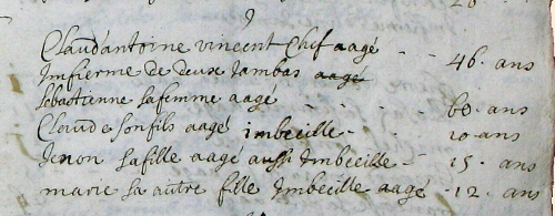Il est difficile, à la vue des informations données, de distinguer les problèmes d’infirmité dus à des accidents de ceux qui pourraient être acquis dès la naissance. Un estropié pourrait avoir été accidenté alors qu’un bossu ou un infirme des deux yeux serait invalide dès sa naissance.