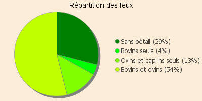 Plus de la moitié des « feux » (54 %) élèvent simultanément bovins d'une part, ovins et caprins d'autre part ce qui est l'habitude à Fontcouverte. 13 % des « feux » n'ont que du petit bétail alors que les détenteurs de seuls bovins sont rares (4 %).