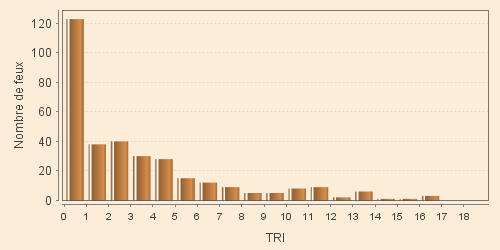 Les TRI des 341 « feux » de Fontcouverte s’étagent de 0 à 46. Six TRI de 20, 28, 34, 37 et 46 sont tronqués dans le graphique.