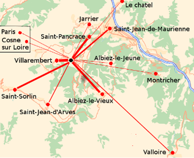 20 % d’entre elles viennent de Villarembert, 15 % de Saint-Pancrace, 5 % d’Albiez-le-Vieux, 5 % de Saint-Sorlin-d’Arves, 4 % de Saint-Jean-de-Maurienne,