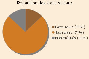 Ne mériteraient le titre de laboureurs, c'est-à-dire de propriétaires d'assez de terres et de moyens de production pour vivre, que peu de chefs de « famille ». Le nombre de journaliers, c'est-à-dire ceux qui n'ont que leurs bras à proposer mais possédent probablement un lopin de terre pour entretenir un jardin et peut-être un peu plus, est nettement le plus important (les trois quarts des « familles »). On pourrait penser que le mode inégalitaire d'héritage soit à l'origine de ce fait : le fils aîné hérite la maison et des terres, ses frères et soeurs ne bénéficiant que d'une compensation financière ou étant aidés dans leur survie grâce à leur hébergement ou leur prise en service chez leur aîné.