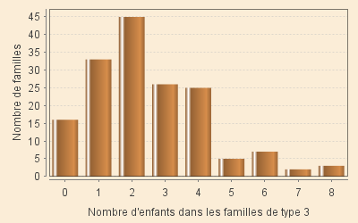 L'analyse de la fréquence du nombre d'enfants par « famille » n'est réalisée que pour les familles simples, les familles élargies et multiples étant plus complexes à interpréter dans la mesure où interviennent des enfants de plusieurs générations.