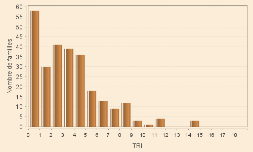 La répartion de ces TRI personnels montre une situation très voisine de la précédente relative aux « familles ». Ceci traduirait le fait que le volume des « familles » est peu dépendant de leur richesse.