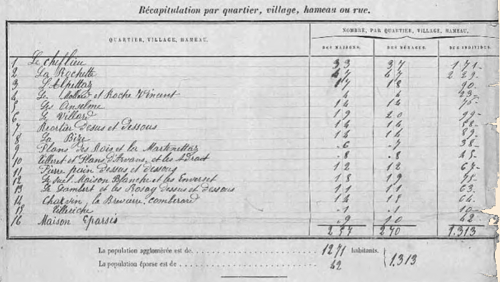 Plusieurs hameaux sont parfois regroupés en une seule rubrique. On constate alors les écarts suivants entre liste nominative et tableau récapitulatif :
