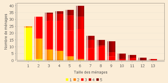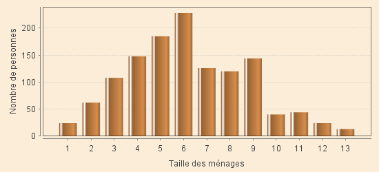 On peut encore déterminer le nombre de personnes de la population vivant dans des « ménages » de taille donnée.