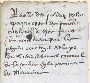 Le rôle des soldats de 1616 présenté sous le format des archives de l'époque (demi A4 coupé dans le sens de la hauteur) est en très mauvais état. Il s’agirait d'une liste des hommes de Fontcouverte auxquels aurait été fait « commandement », liste réalisée sur ordre de ... Sieur Mannuel colonel (?) de la milice de la province de Maurienne et arrêtée au 7 septembre 1616.