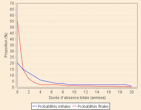 Une simulation a été utilisée pour estimer les probabilités A qu'ont les absences « provisoires » d'avoir une durée totale donnée.