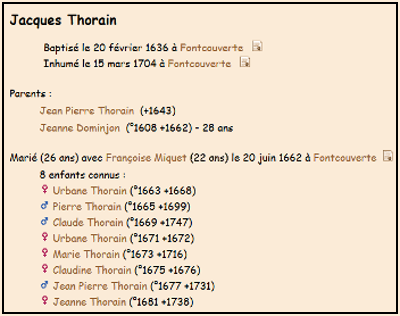 Par ailleurs, si elles peuvent être utiles à leurs études plus générales, plus rigoureuses et plus précises, les spécialistes de la démographie historique trouveront la totalité de nos informations locales sous une forme informatique facilement transposable aux bases de données démographiques.
