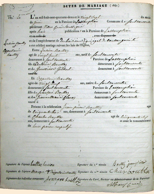 Enfin, suivant la mode française, il apparaît le consentement éventuel des parents des époux si celà est nécessaire.