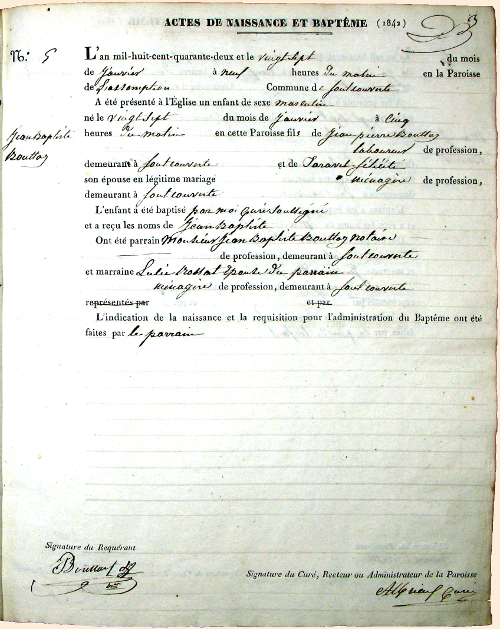 Le requérant du baptême, le plus souvent le père du baptisé, signe en bas de l'acte à côté du prêtre.
