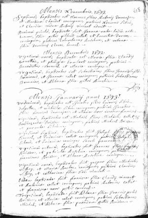 Quant aux copies pour l'évêque, elles se faisaient plutôt dans le calme de l'hiver, tout au plus sous le stress du prochain synode qui approchait. Elles étaient la plupart du temps rédigées d'une seule main et relativement bien écrites dans un ordre génénéralement correct comme le montre la page ci-contre de la seule main du vicaire Jean-Baptiste Favier en fin 1792 et début 1793.