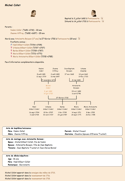 Tous les noms de personnes présentés en brun dans la fiche donnent immédiatement accès à la fiche personnelle correspondante dans les conditions ci-dessus.