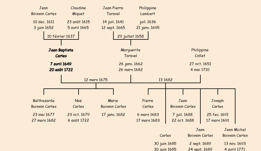 Jean Baptiste Carles apparait dans la consigne des mâles de 1713. |