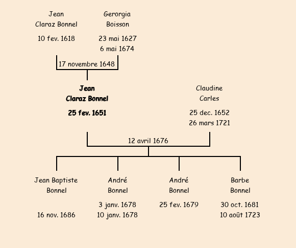 Père : Jean Claraz Bonnel, fils de Michel | Parrain : Jean Boisson (fils de Gaspard) |