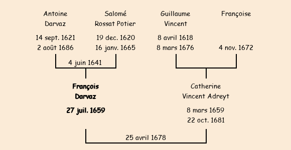 Marié (18 ans) avec Catherine Vincent Adreyt (19 ans) le 25 avril 1678 à Fontcouverte ![]() |