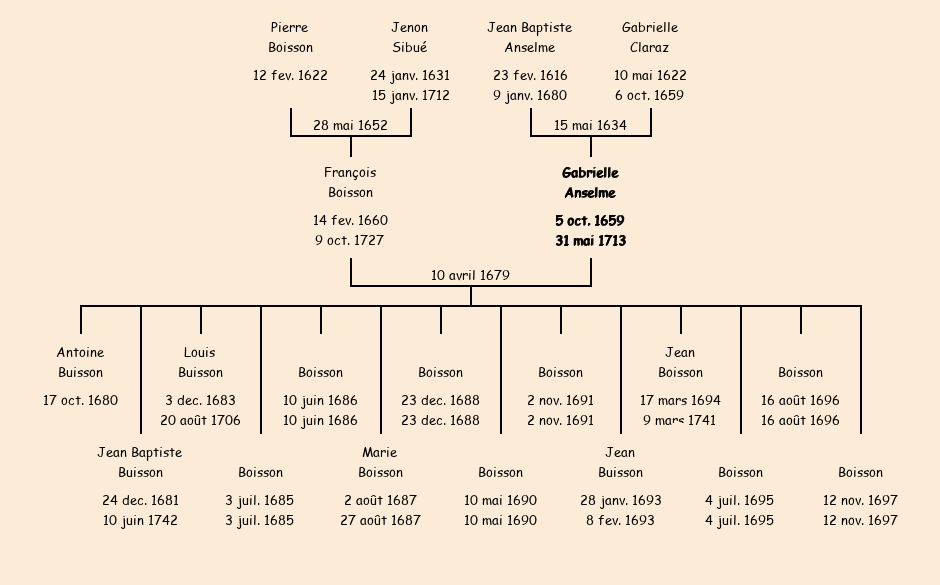 Mariée (19 ans) avec François Boisson (19 ans) le 10 avril 1679 à Fontcouverte ![]() |
