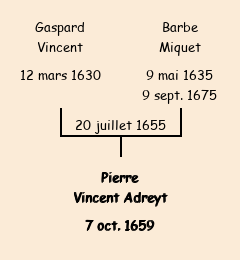 Père : Gaspard Vincent Adreyt | Parrain : Jean Pierre Vincent (fils de Jean) |