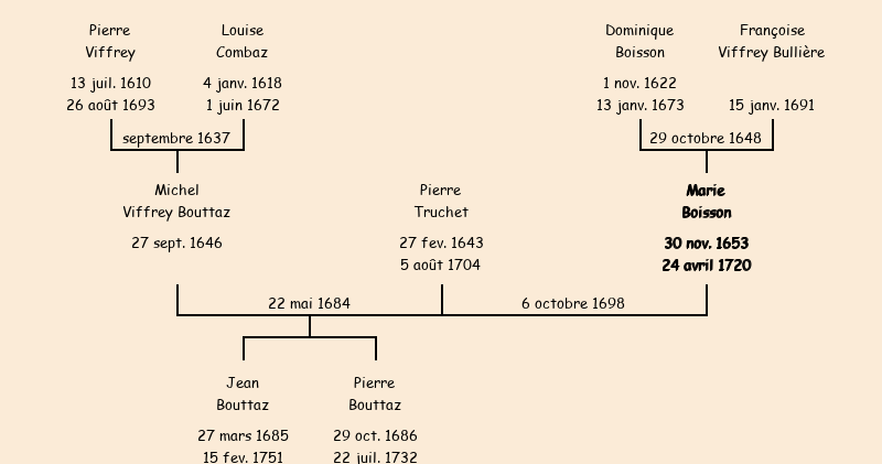 Epouse : Marie Boisson (veuve de Michel Viffrey Bouttaz), fille de feu Dominique |