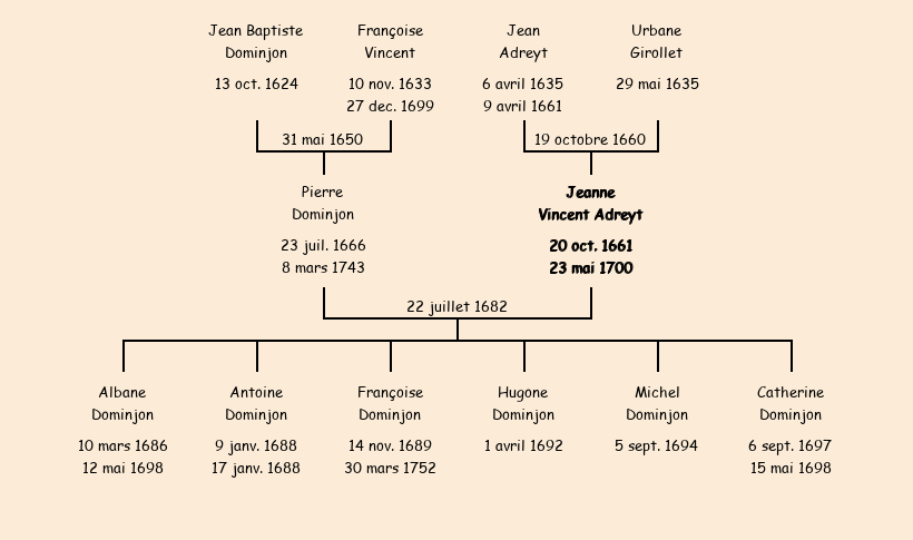 Mariée (20 ans) avec Pierre Dominjon (15 ans) le 22 juillet 1682 à Fontcouverte ![]() |