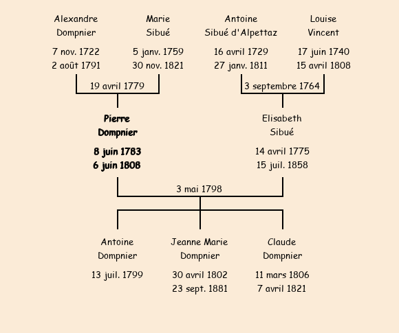 Epoux : Pierre Dompnier, fils de feu Alexandre et de Marie Sibué |