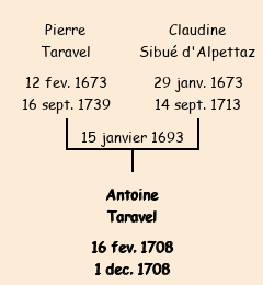 Mère : Claudine Sibué d'Alpettaz | Marraine : Françoise Arnaud (épouse du dit Pierre Taravel) |