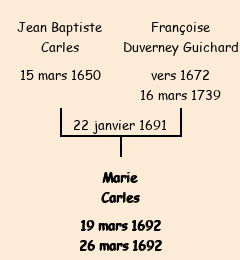 Baptisée le 19 mars 1692 à Fontcouverte ![]() | |